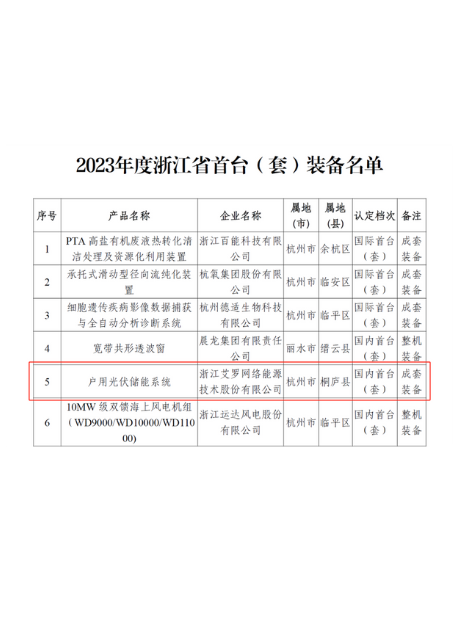 “智能光伏储能并网逆变器”入选“浙江省装备制造业首台套产品”